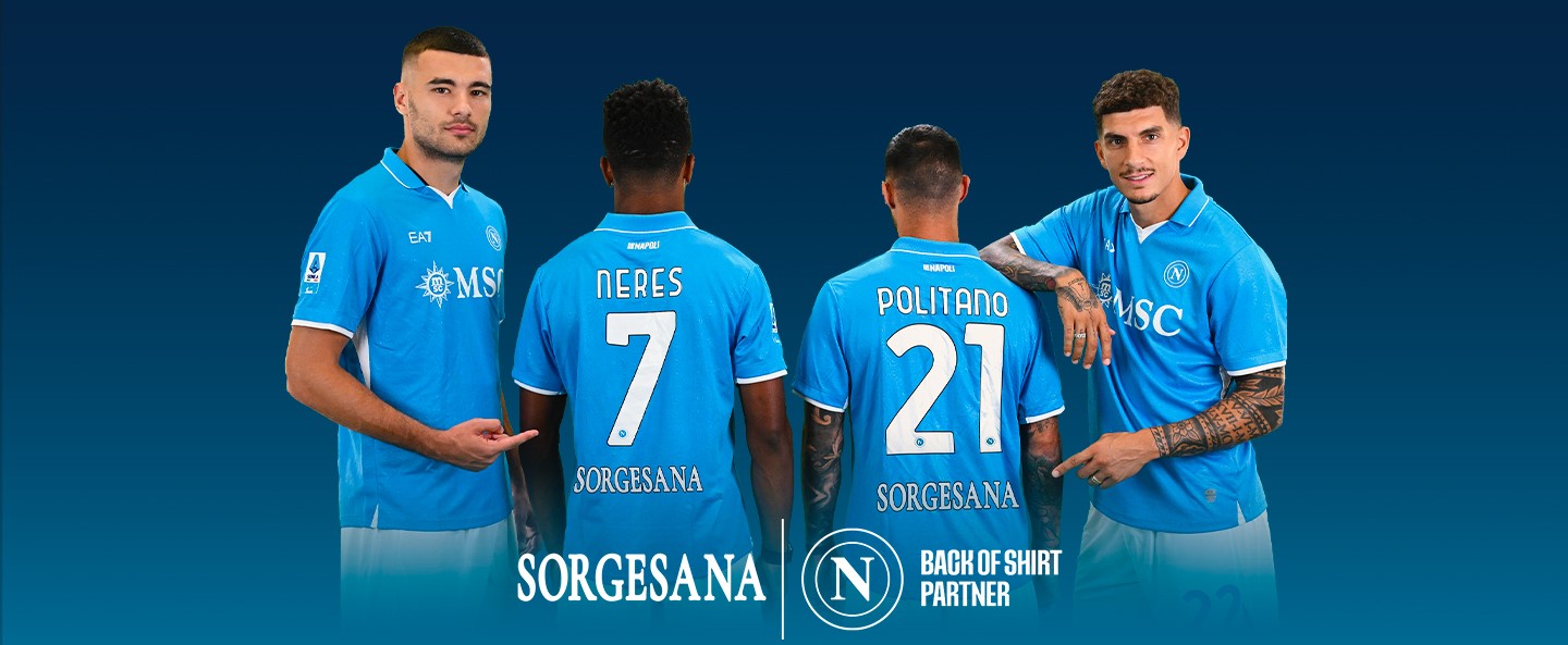 Importante novità in casa Napoli. Acqua Sorgesana è il nuovo back shirt sponsor, il nome comparirà sul retro delle maglie. Il presidente Aurelio De Laurentiis trova di nuovo un accordo con il gruppo SGAM Spa.