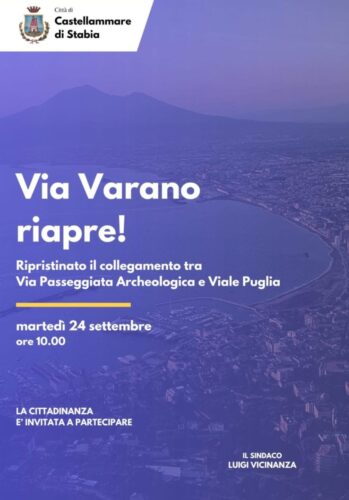 L’importante notizia della riapertura di Via Vecchia Varano, prevista per martedì 24 settembre alle ore 10:00, è stata annunciata dal sindaco di Castellammare di Stabia, Luigi Vicinanza.