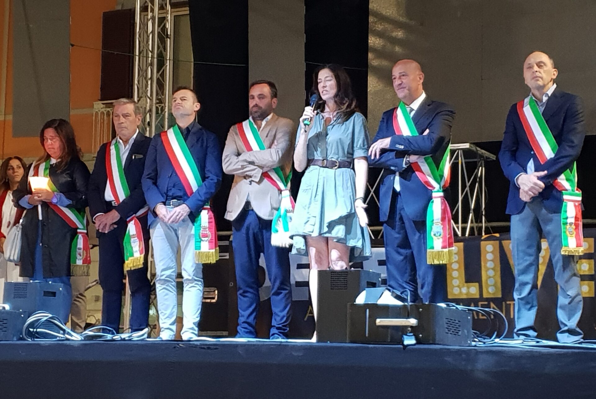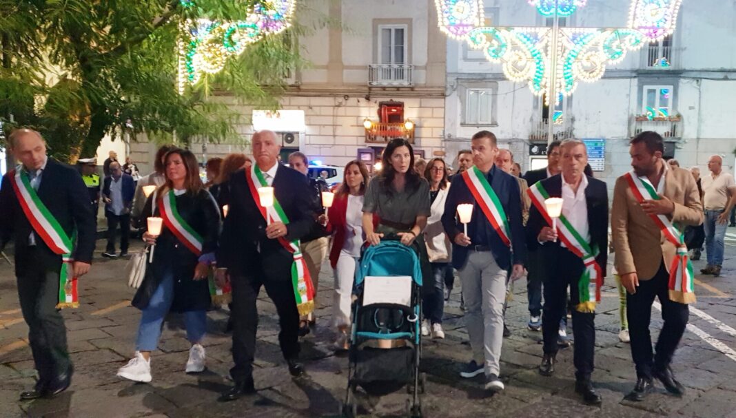 Dopo la benedizione del parroco, don Antonino D’Esposito, tutti in marcia fino a piazza Cota, dove la mamma ha ringraziato personalmente la comunità affiancata della fasce tricolori di tutta la penisola.