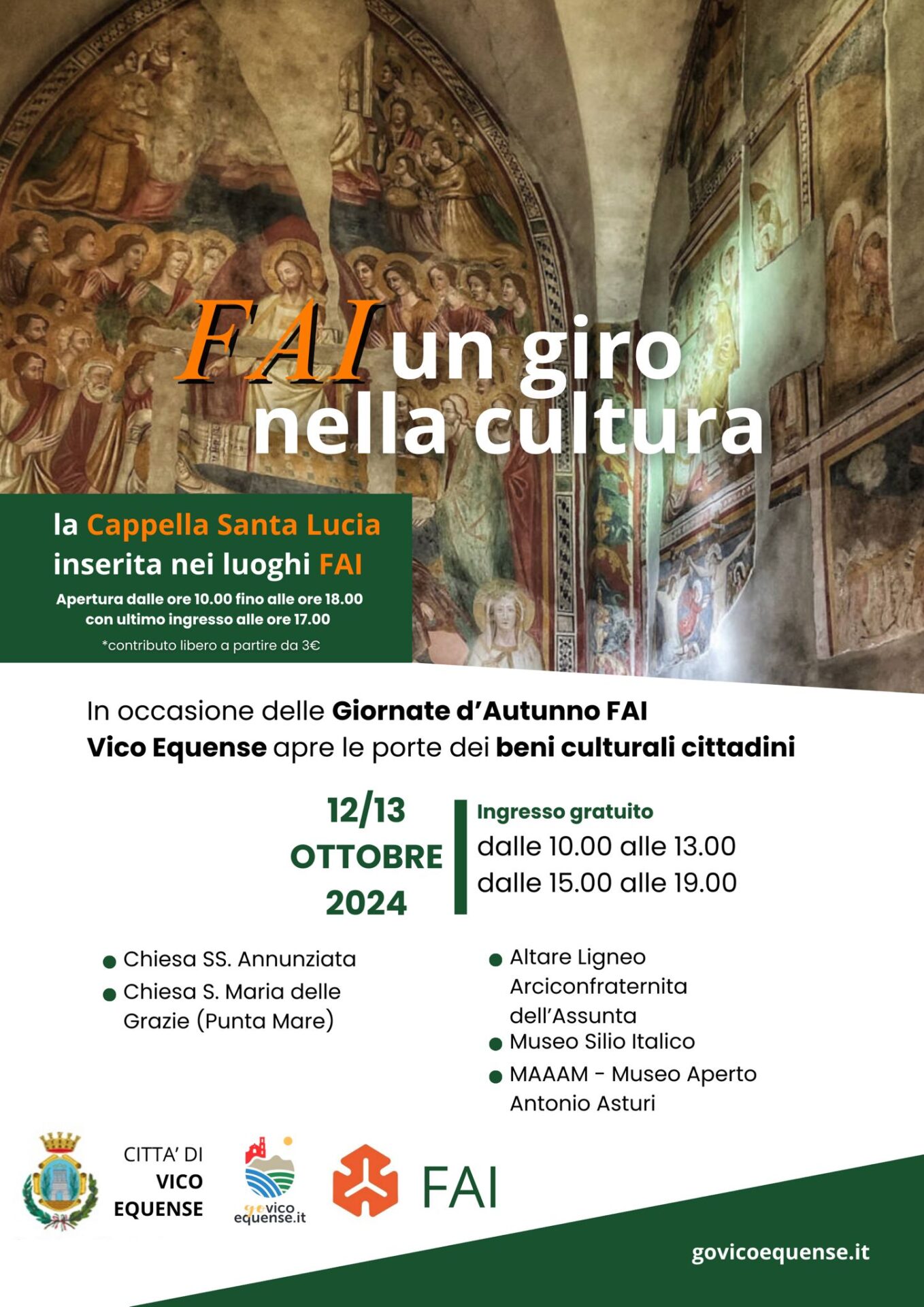 Per questa nuova edizione il Gruppo FAI della Penisola Sorrentina, grazie alla collaborazione dell’associazione Pro Loco Monte Faito – Moiano e degli apprendisti ciceroni dell’Istituto tecnico polispecialistico S. Paolo di Sorrento, curerà un’apertura dedicata alla cappella di Santa Lucia a Massaquano, con il sostegno del patrocinio della Città di Vico Equense.
