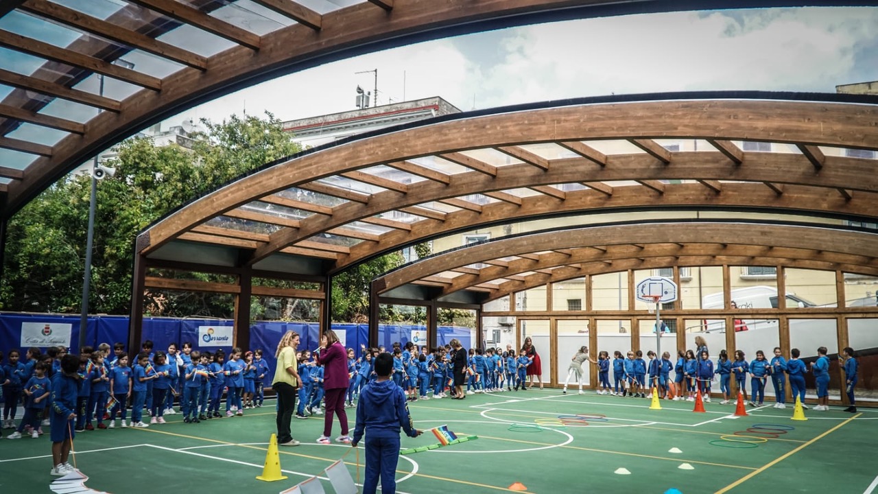“Benvenuti a casa vostra: questo è lo spazio dei vostri bambini – ha esordito il sindaco Coppola – Lo dedichiamo idealmente alle tante generazioni di bambini e di insegnanti che hanno desiderato questo momento. Abbiamo lavorato senza sosta, e per tanti mesi, e superato tanti ostacoli per guadagnarci i sorrisi con i quali i bimbi oggi ricambiano l’impegno. Abbiamo voluto dotare questo quartiere di una struttura di ultima generazione, con soluzioni all’avanguardia e che strizza l’occhio all’ambiente. Un impianto che, ci auguriamo, possa vivere tutto l’anno, indipendentemente dalle condizioni atmosferiche”.