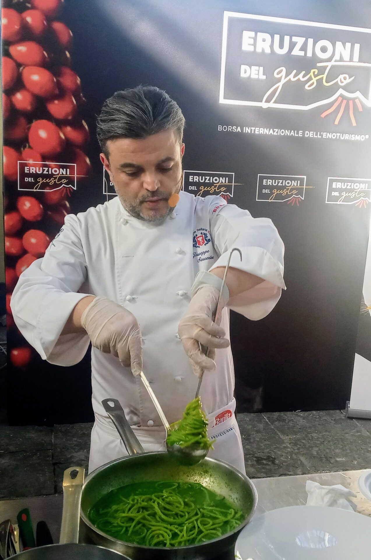 Intervengono: Domenico Iavarone (già Stella Michelin, Executive Chef presso l’hotel La Favorita di Sorrento) Eduardo Giglio (executive chef del ristorante Line di Ercolano) Angelo Carannante (Chef Stella Michelin, Executive Chef del ristorante Caracol di Bacoli) Mario Volpe (Food & Beverage manager dell’hotel Excelsior di Napoli, delegato regionale Ais) Ciro Poppella (maestro pasticcere patrono dell’omonima pasticceria), Luigi Vitiello (Presidente Unione Regionale dei Cuochi della Campania – F. I. C.). Al pubblico verrà mostrata dal vivo la preparazione di piatti della tradizione campana, le tecniche di lavorazione dei prodotti più noti della nostra terra vulcanica ‘innaffiati’ da vini più delicati.