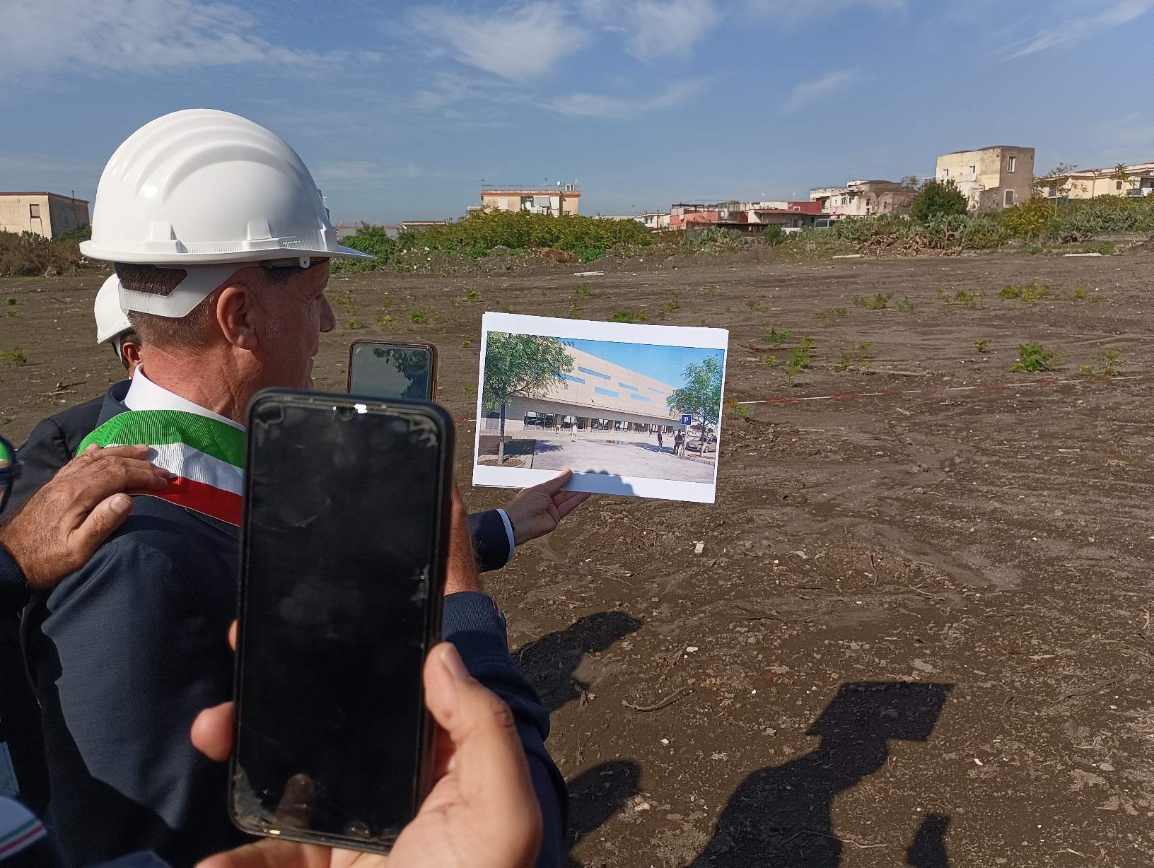 Caschetto bianco di protezione a protezione del capo e fascia tricolore, ha posto la prima pietra poco prima delle 11.20. Il sindaco di Torre del Greco, Luigi Mennella, ha così dato il via ufficiale ai lavori per la realizzazione del palazzetto dello sport, la prima struttura che comporrà il più ampio progetto della Cittadella destinata a sorgere nella zona di viale Europa.