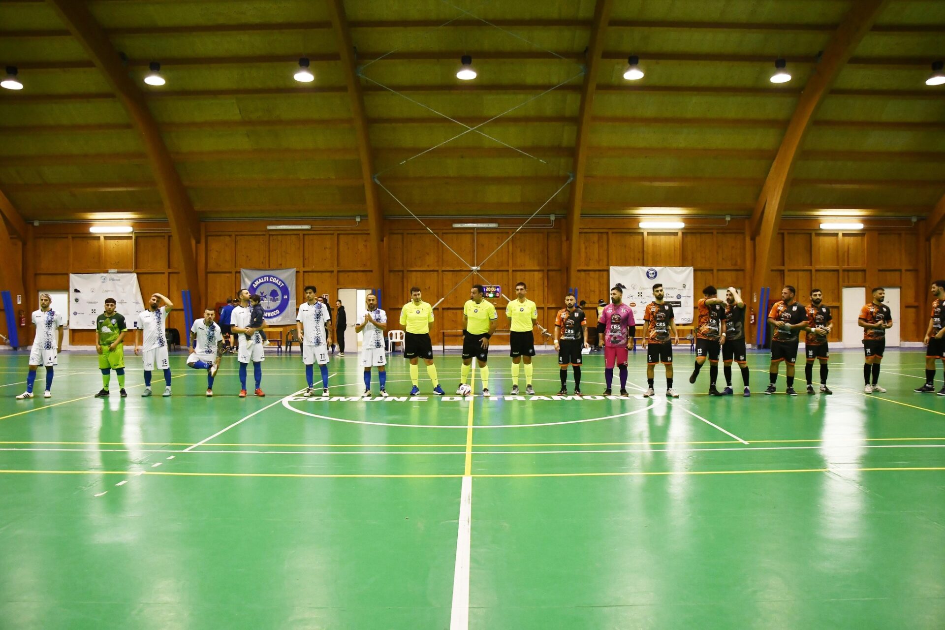 Dopo due trasferte consecutive, il team del Presidente De Luise torna a Tramonti e viene accolto da un Palazzetto dello sport gremito. L’avversario è la Virtus Campagna che in settimana ha cambiato guida tecnica affidandosi a Gianfranco Bonito, vecchia conoscenza del Futsal Coast. Gli ospiti iniziano meglio e pronti via è Iuorio a scaldare le mani a Gagliano che al 3 min. deve incassare la rete proprio su assist del n.7 che pesca Roscigno sul secondo palo.