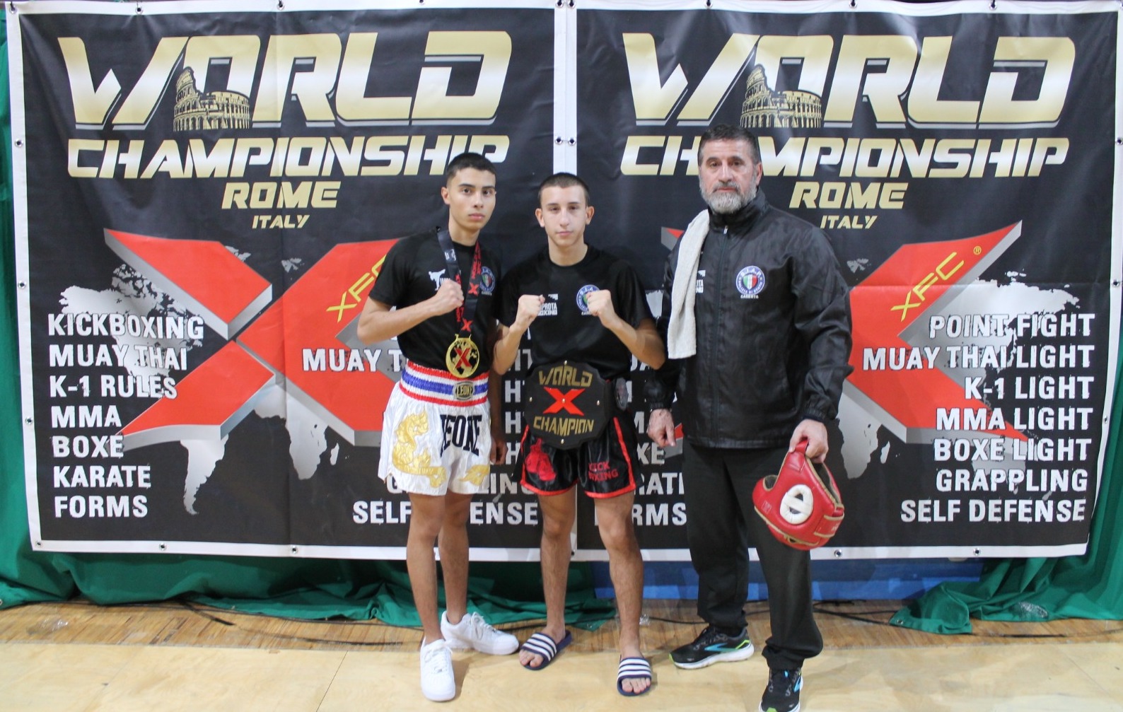Una manifestazione di spessore a cui hanno preso parte atleti provenienti da diverse nazioni del globo. I due allievi saliti sul ring sono stati: Davide De Rosa, primo classificato premiato con la cintura World X.F.C.; Carmine di Franco, medaglia d’oro. Entrambi i combattenti sono cittadini di Teverola.