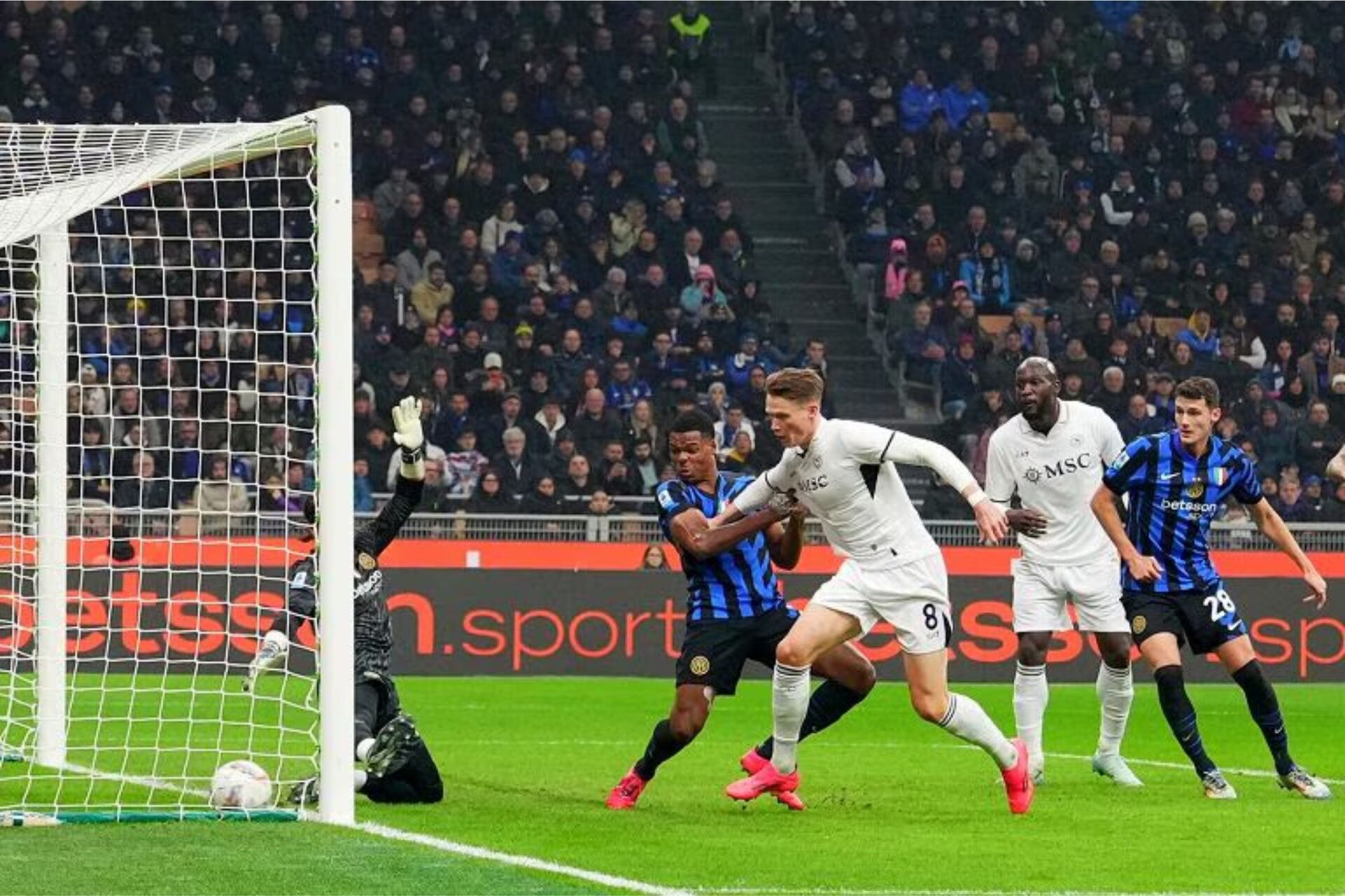 Al ventitreesimo goal del Napoli con McTominay. Schema delizioso da calcio d’angolo, la difesa nerazzurra va in bambola e lo scozzese mette dentro da pochi passi dopo il tocco di Rahmani.