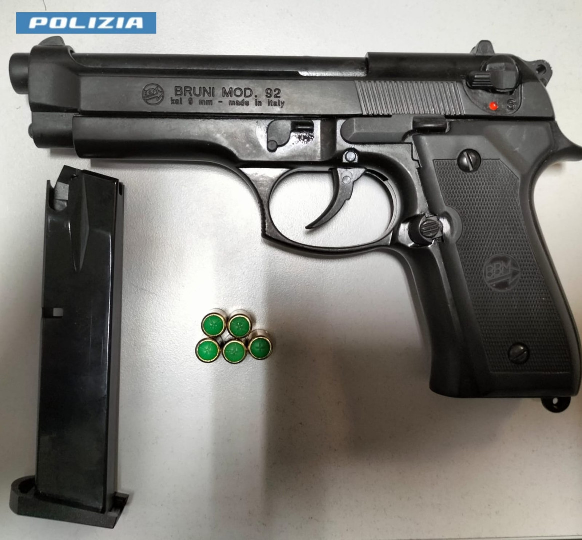 I poliziotti, non senza difficoltà, lo hanno bloccato ed hanno accertato che, nella tasca della felpa, stava celando una pistola a salve cal.9, priva di tappo rosso, con 5 cartucce a salve; negli slip, invece, aveva nascosto una dose di hashish.