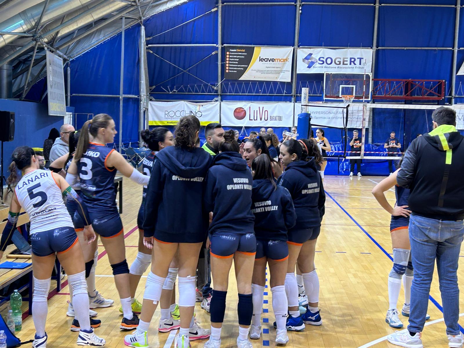 25-17, 22-25, 20-25, 25-22, 15-10 Arzano si presenta senza Marianna De Siano, bloccata da un infortunio, mentre le tigri oplontine registrano la condizione di forma non ottimale di Giada Biscardi che prova ad essere della partita ma poi cede il posto a Eliana Rendina. E sono proprio le prestazioni delle due subentrate, De Siano viene ben sostituita dalla giovane Giulia Russo, a fare da termometro del match. L’avvio di Arzano è sontuoso. Difficile per la Vesuvio Oplonti mettere palla a terra. L’avvio è 10-6 per le padrone di casa che allungano sul 17-10 e chiudono il primo a più otto sulle avversarie. Il secondo set si apre in equilibrio. Sul 4 a 4 primo break di Arzano che allunga fino al punteggio di 8-4. Sul 13-9 il cambio di coach Alminni che richiama Giada Biscardi e inserisce Eliana Rendina. Sul 13-12 il primo time-out di coach Eliseo. Le arancio -blu oplontine rispondono, prima agganciando Arzano sul 13 pari, con un muro di Vujko, e poi superando le padrone di casa con un ace di Laura Biscardi. Un muro di Vujko porta il punteggio sul 13 a 15. Arzano risponde riportandosi sul 16 pari. Un lungolinea di Eliana Rendina rompe il nuovo equilibrio e la Vesuvio Oplonti allunga fino a chiudere a più 3. Scambi lunghi nel terzo set. Arzano prova a riprendere le redini della partita ma è la Vesuvio Oplonti a dettare il ritmo. Avvio di set 11 a 5 per le tigri vesuviane. La mano pesante di Sara Gervasi e la concentrazione di capitan Jessica Lanari fanno da contraltare alla prestazione in calo di Jasmine Suero e Lara Gianfico, autentiche trascinatrici nel primo set. Il due a uno è firmato da Laura Biscardi. Il quarto set è all’insegna dell’equilibrio. Aquino e Putignano tengono il campo , prima 9 a 9 poi 18-18. Aquino trova un muro fuori, poi muro su Rendina, e Putignano e brava a mettere a terra il 21 a 18. + 3 che rappresenterà la forbice finale. Nel tie -break Arzano ritrova, come nel primo set, le redini dell’incontro e in casa Vesuvio Oplonti prevale la frustrazione per l’ennesima bella prestazione che non coincide con la vittoria.