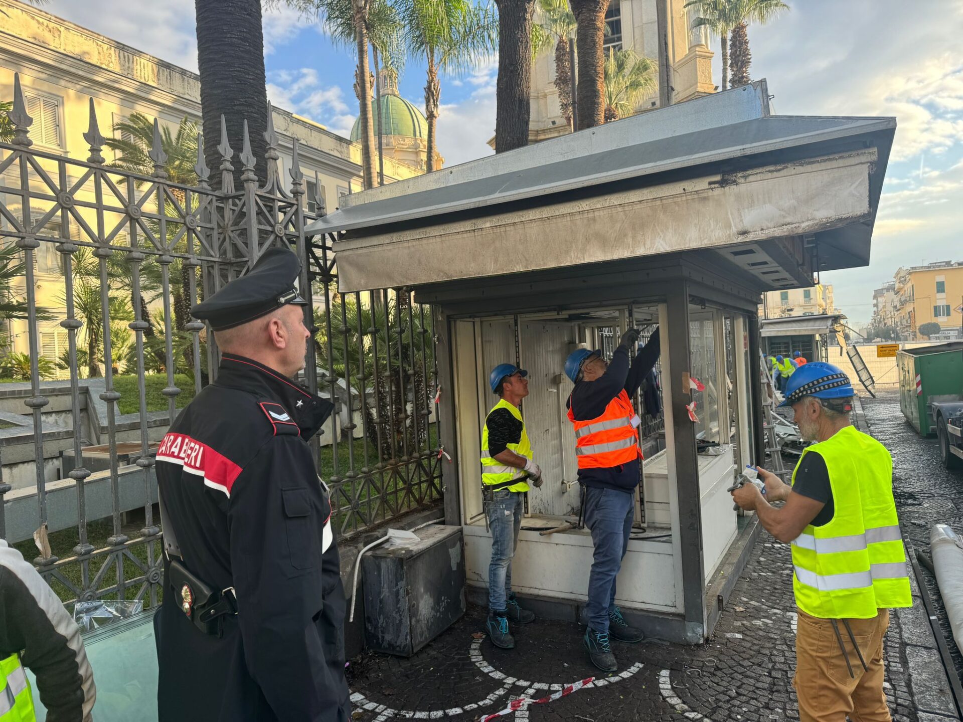 Il sequestro di gazebo e chioschi era stato eseguito a inizio ottobre dai carabinieri della Compagnia oplontina. Le operazioni stanno procedendo con la presenza dei militari dell’Arma dei Carabinieri.