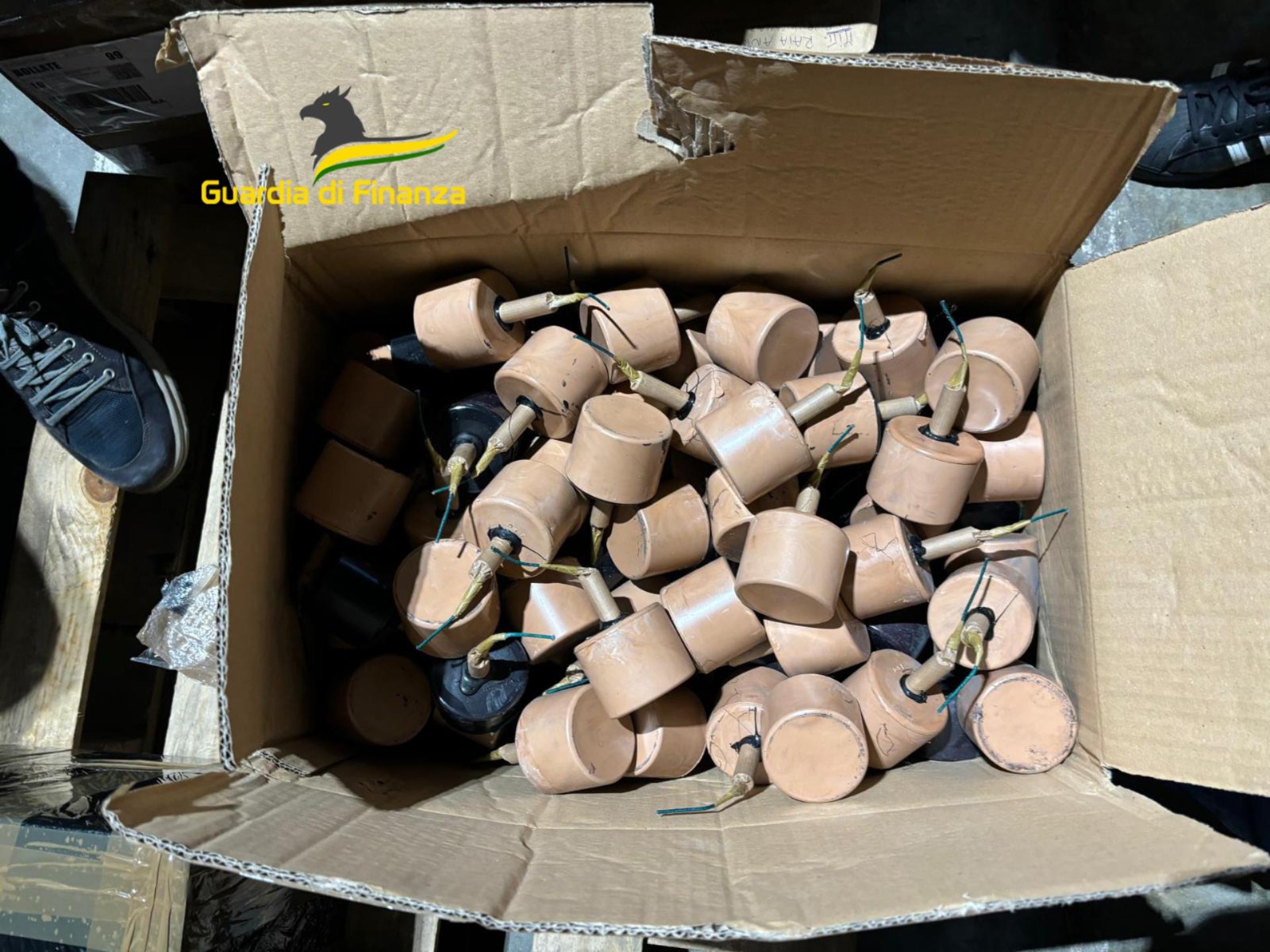 Sono state denunciate due persone, di cui una arrestata, per fabbricazione, detenzione, vendita e trasporto di materiale esplodente, nonché per violazioni delle norme antincendio e di pubblica sicurezza. In particolare, i finanzieri del Gruppo di Nola hanno individuato alcune spedizioni sospette presso una piattaforma logistica di Mariglianella, che svolge l’attività di corriere. L’intervento ha consentito di individuare e sequestrare, all’interno di plichi che apparivano come spedizioni anonime, complessivamente 400 kg di fuochi d’artificio di produzione artigianale ad alto potenziale esplosivo – quali bombe carta, cipolle e petardi – di cui è vietata la fabbricazione, nonché numerose “batterie pirotecniche” da 100 e 200 colpi, per un totale di circa 5.000 “pezzi”.