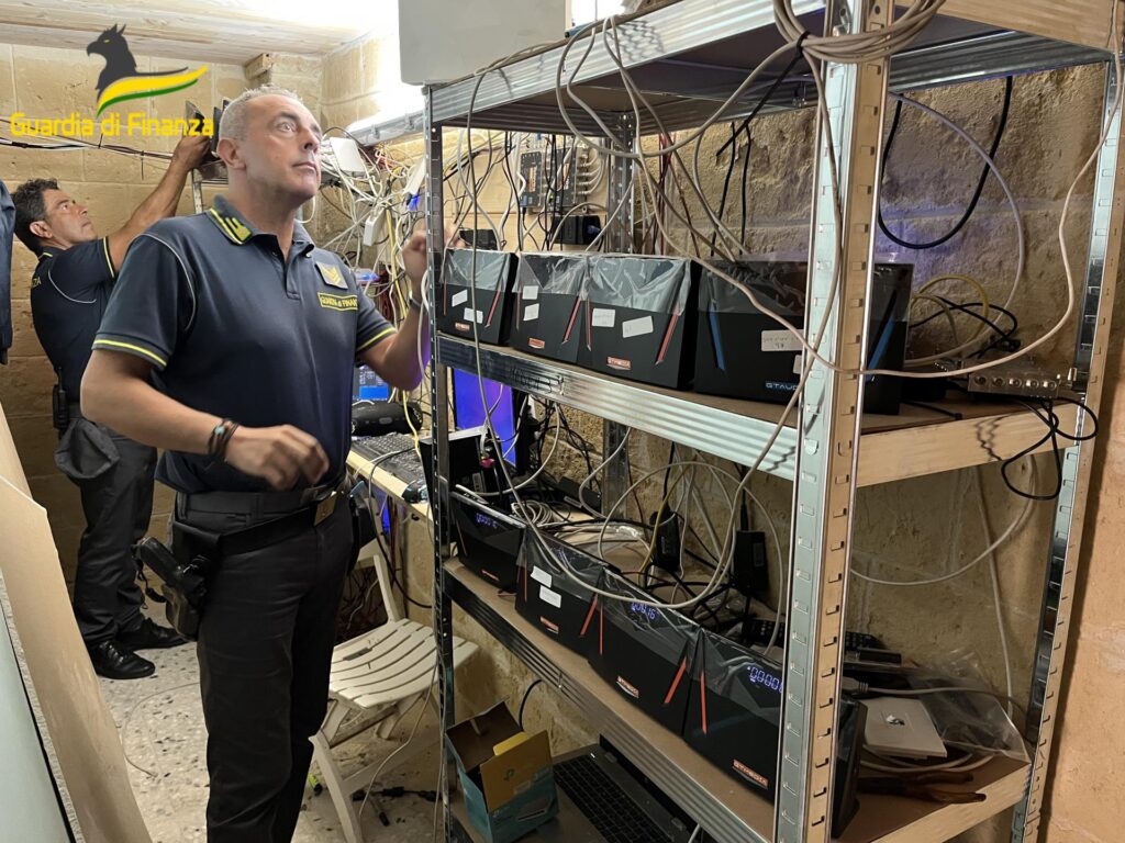 Nel corso delle perquisizioni sono state sequestrate, inoltre, una sala server abusiva e moderni apparati informatici in grado di generare valute virtuali, nonché sostanza stupefacente derivata dalla cannabis che il principale indagato era solito produrre all’interno di una serra indoor (attrezzata con irrogatore, luci e termostato), ubicata negli stessi locali adibiti a centrale della Iptv.