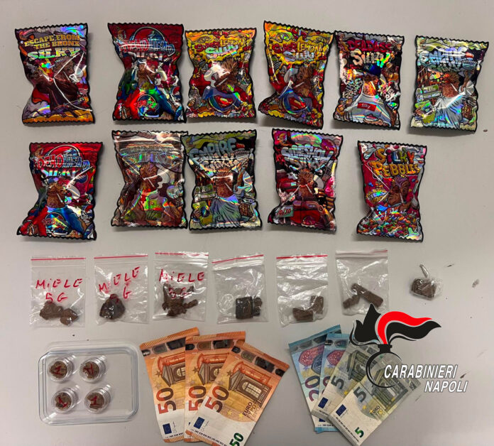 Nell’auto del fuggitivo, bloccato e arrestato, 55 grammi di marijuana, circa 40 di hashish e 200 euro in contante ritenuto provento illecito. La marijuana era divisa in 11 mylar bags colorate, simili a quelle utilizzate per i giocattoli venduti in edicola.