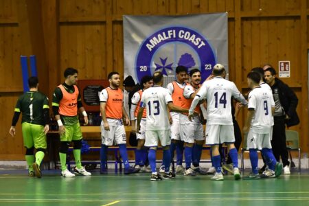 Il folletto napoletano, alla prima a Tramonti in questa stagione, sale sugli scudi e dopo poco più di un minuto è il più lesto a ribadire in rete dopo una parata di Menzione su Galluccio. Il Terzigno accusa il colpo e nel tentativo di recuperare si scopre prestando il fianco alle ripartenze bianco blu. Al 12’ Menzione si becca il doppio giallo per un presunto fallo di mano fuori area. Al 14’ è ancora Napoletano che incornicia la sua partita con un gran gol che chiude definitivamente la partita.