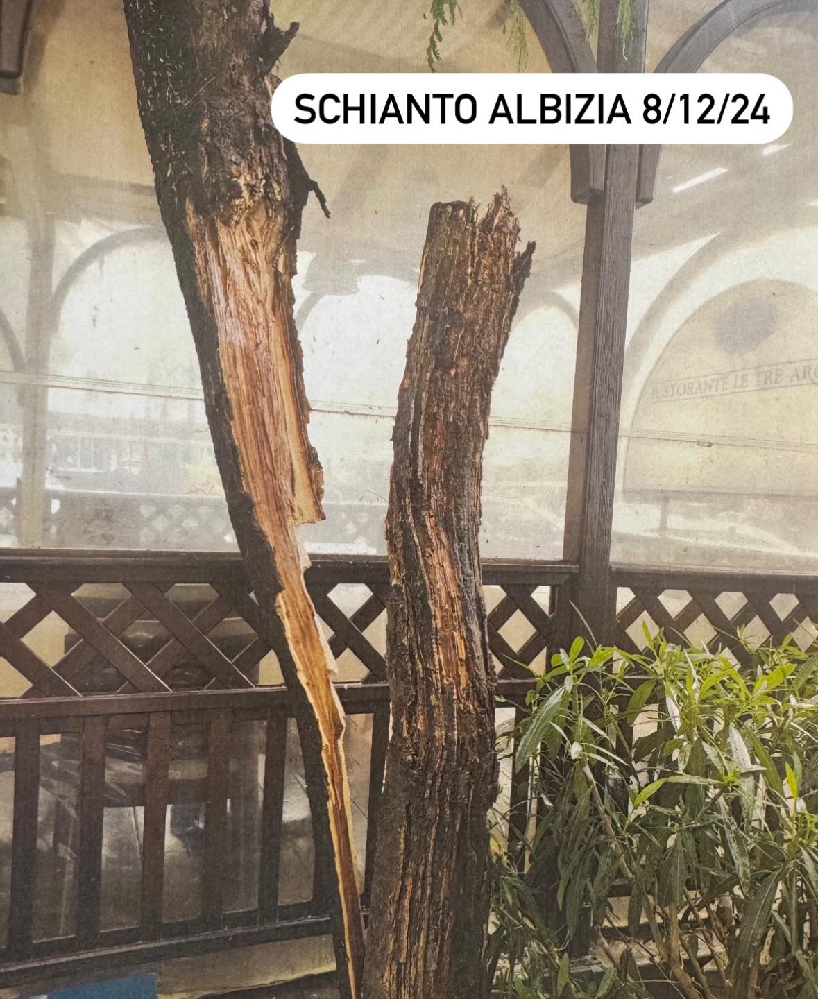 Di seguito in foto: gli alberi malati di Piazza Cota e lo schianto dell’albero avvenuto in data 8 dicembre 2024.