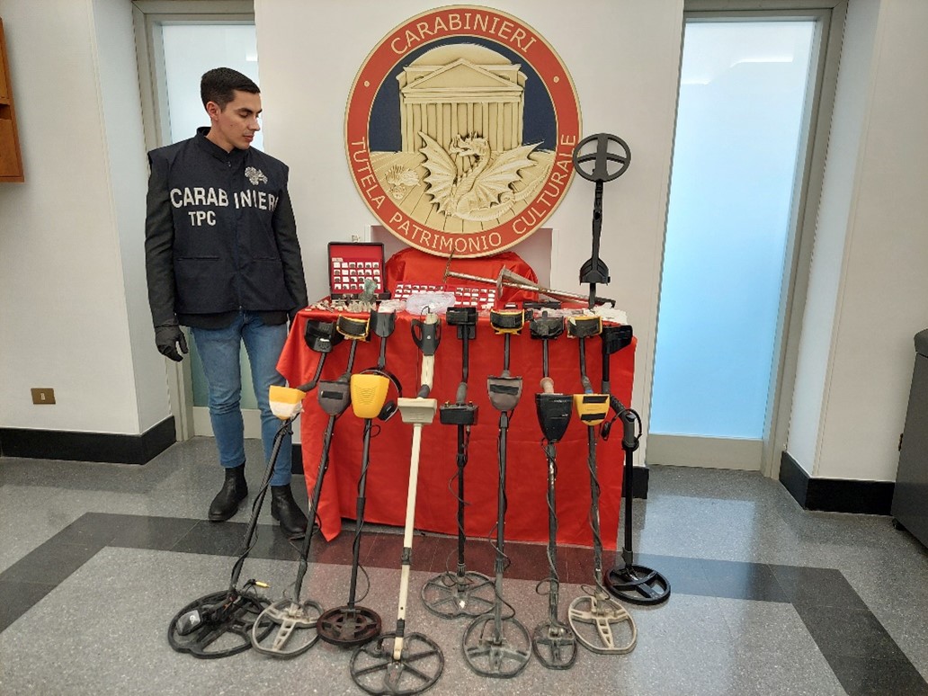 Lo scorso 13 febbraio i Carabinieri della Sezione Archeologia del Reparto Operativo del Comando per la Tutela del Patrimonio Culturale (Tpc), in collaborazione con il Nucleo Investigativo – Gruppo Carabinieri di Torre Annunziata, in esecuzione di un decreto di perquisizione emesso dalla Procura della Repubblica di Torre Annunziata, hanno proceduto a 19 perquisizioni nei confronti di altrettanti soggetti indagati per i reati di associazione per delinquere, ricettazione e furto di beni culturali, presso obiettivi localizzati in Campania, Puglia ed Emilia Romagna.