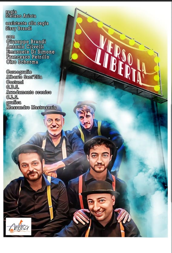 Note di regia. Verso la Libertà è la storia raccontata da cinque folli che pensano di conquistare il mondo in un modo assurdo, ed impossibile. La scelta dei costumi di scena con i colori dell’arcobaleno è fortemente voluta per richiamare un grande senso di umorismo e di divertimento e per far sì che lo sgangherato treno sia pronto a partire. In questa storia un po’ surreale non ho voluto sottolineare la megalomania, la crudeltà, bensì ho voluto sognare in modo paradossale, ottimista, assurdo, evidenziando che la libertà è un dono di ogni essere umano; pensare, parlare, decidere, vivere liberi e felici, usando un elemento fondamentale, l’intelligenza.