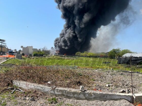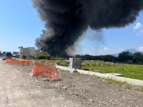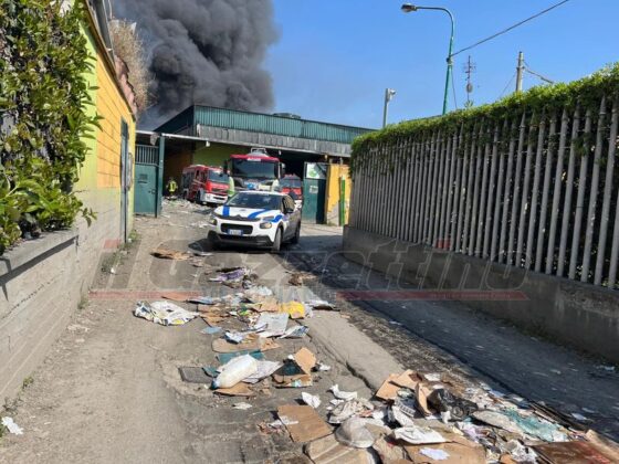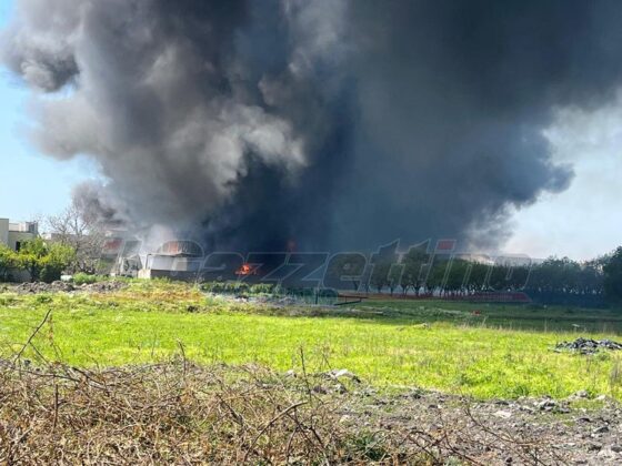 Erano all’incirca le 12:00 quando un denso fumo grigio ha cominciato a sollevarsi dalla periferia di Scafati ai confini con Sant’Antonio Abate. Un enorme capannone, adibito a sito di stoccaggio delle balle di rifiuti, prodotte dalla S.en.ec.a. Srl, ha preso fuoco.