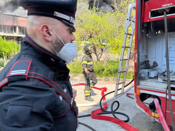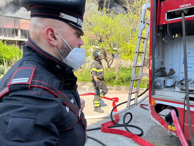 Sul luogo dell’incendio anche i Carabinieri e la Polizia Municipale che ha gestito il traffico isolando le strade limitrofi.