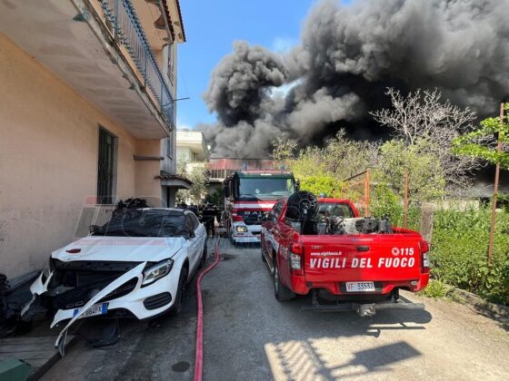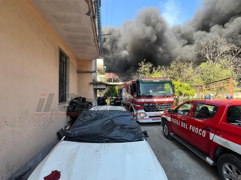 L’incendio si è sviluppato in via Deposito Munizioni, una traversa di via Gallileo Ferraris, interessata da importanti lavori urbanistici. In pochissimi minuti le fiamme si sono propagate all’intero capannone, con lingue di fuoco visibili da lunga distanza e con un fumo densissimo che subito ha cominciato, ad essere trasportato verso Est da un costante vento che ha continuato a spirare dal mare verso l’entroterra. In pochissimi minuti una “nuvola” grigia ha in parte oscurato anche il centro di Scafati continuando verso le cittadine limitrofi.