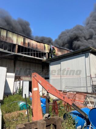 Intanto sotto l’azione delle temperature prodotte dalle fiamme particolarmente aggressive, le travi metalliche che reggevano il capannone sono state deformate e indebolite fino al collasso della struttura.