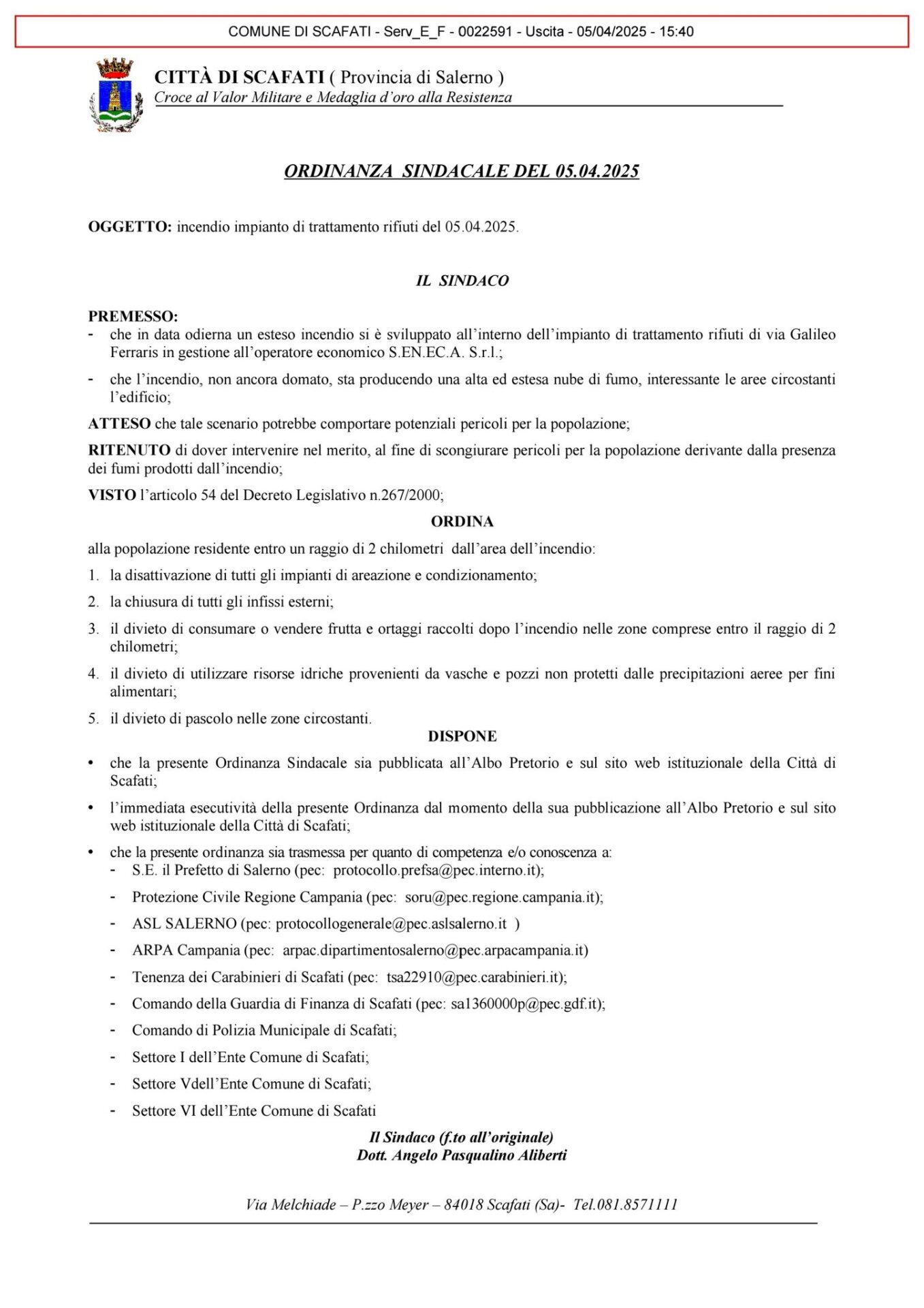 Nel pomeriggio è partita un’Ordinanza del sindaco di Scafati
