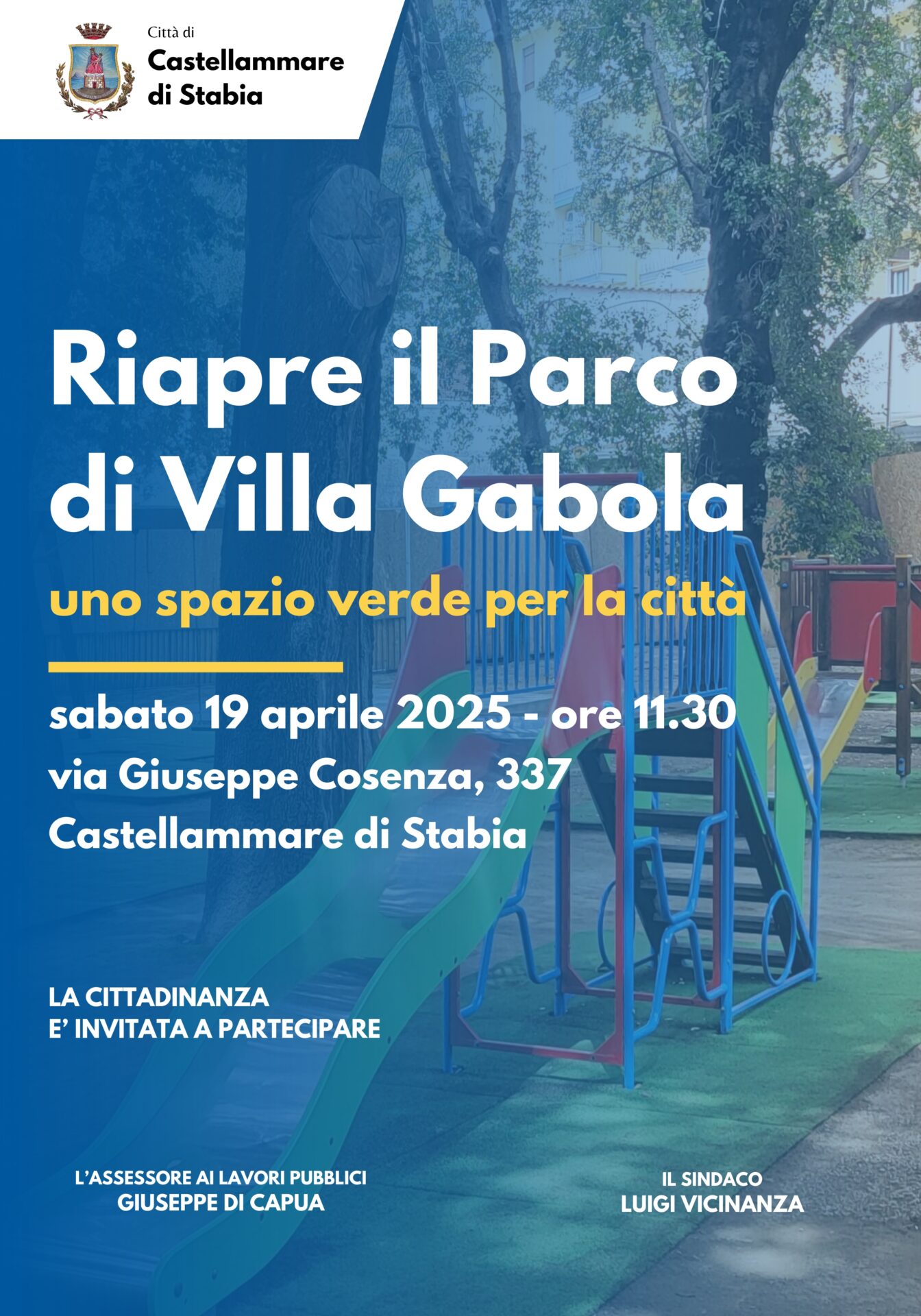 Doppio appuntamento sabato 19 aprile: dalle ore 8:30 alle 14:00, in Villa Comunale, torna il Mercato Coldiretti Campagna Amica, con un agriaperitivo di Pasqua. Alle ore 11:30, invece, sarà restituito alla città il Parco Pubblico di Villa Gabola (Via Giuseppe Cosenza, 337). Il Parco resterà aperto con i seguenti orari: dalle ore 9.00 alle ore 13.30 e dalle 16.00 alle 21.00.