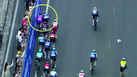 In volata Matteo Moschetti, velocista della Q36.5 Pro Cycling, è stato sanzionato dalla giuria e declassato all’ultima posizione per condotta scorretta nello sprint finale, ma la penalità è stata poi aggravata: i commissari hanno ritenuto che Moschetti abbia ostacolato volontariamente Olav Kooij (Visma | Lease a Bike), spingendolo verso le transenne con un movimento del corpo ritenuto intenzionale.