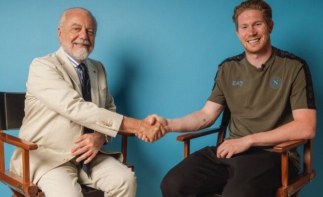 Il presidente del club partenopeo, Aurelio De Laurentiis, dalla residenza romana dove ha sottoscritto il contratto con il fuoriclasse ex City, lo ha annunciato sul social X: “Benvenuto Kevin!“. Bella la foto del presidente De Laurentiis sorridente e in completo chiaro che stringe la mano a De Bruyne con t-shirt sportiva targata Napoli.