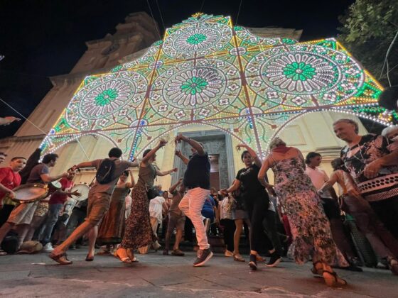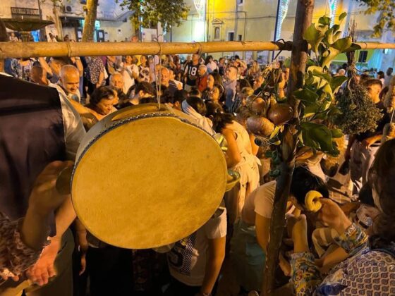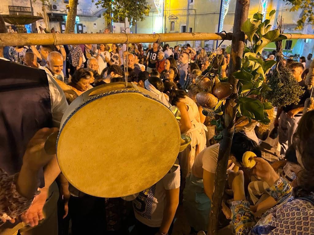 La “Sagliuta” non è solo un pellegrinaggio: è un’esperienza collettiva che unisce spiritualità e tradizione orale. Il momento culminante si vive a Piazza Roma, dove si svolge la “Tammurriata a Sant’Anna”: un evento in cui musica popolare, danza e canti si intrecciano nel rito festoso delle paranze, accompagnate dal ritmo antico e inconfondibile della tammorra.