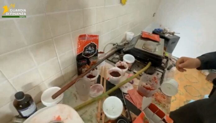 Un laboratorio clandestino per la produzione e il confezionamento di melassa da narghilè, nota anche come shisha, è stato scoperto e sequestrato a Camposano, in provincia di Napoli, dai militari del Comando Provinciale della Guardia di finanza partenopea. La struttura, completamente abusiva e allestita in un appartamento condominiale, era gestita da un cittadino siriano di 41 anni, privo di qualsivoglia autorizzazione commerciale e sanitaria.