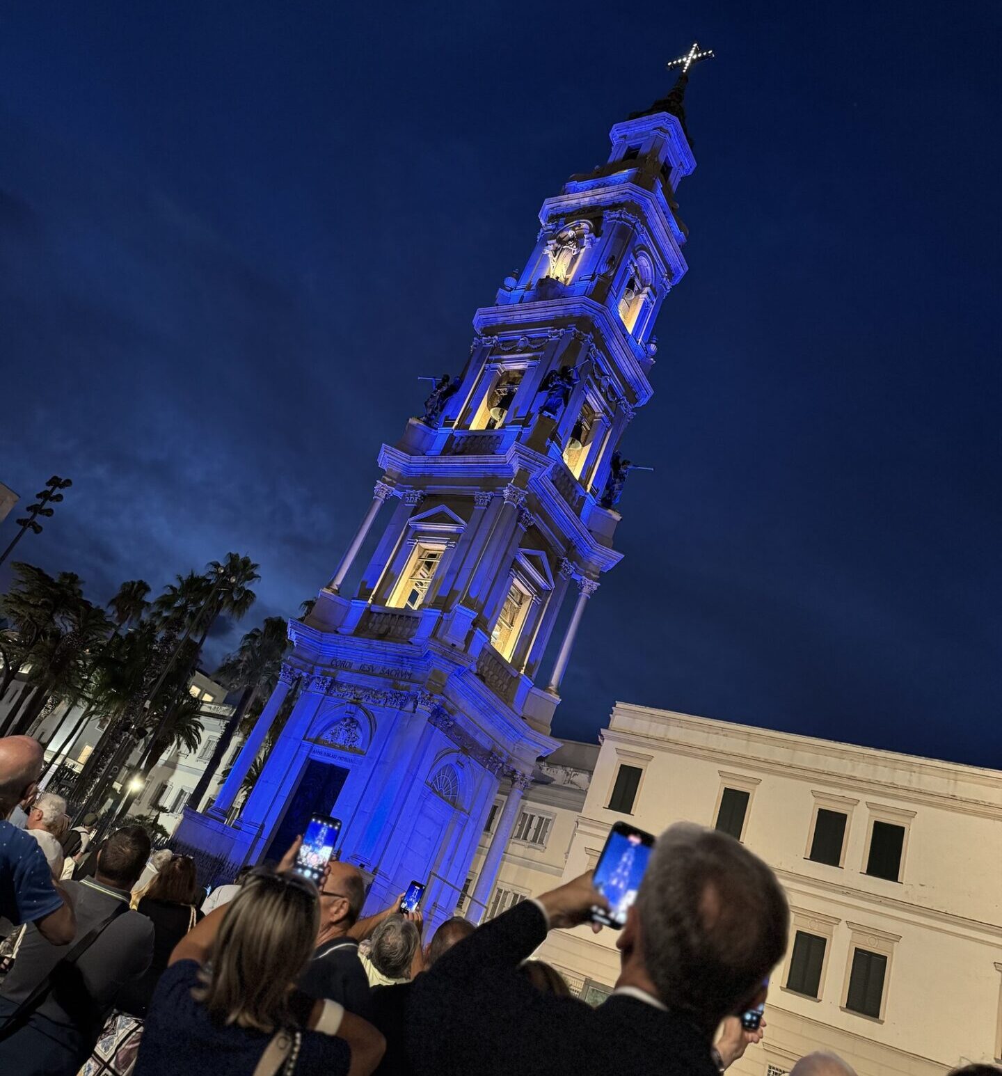 L’arcivescovo Caputo ha spiegato che «le parole non sono sufficienti a descrivere la bellezza dell’opera… quel campanile… è un faro che ci dice… che la fiamma del bene e della speranza è ancora viva», estendendo il simbolismo anche a chi non ha fede. Richiamando Bartolo Longo, ha sottolineato l’amore con cui il Santuario è stato edificato e ora custodito da una collaborazione tra enti, esaltando il valore della cooperazione per il bene comune.