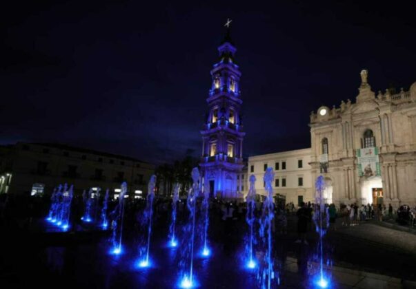 L’installazione luminosa ricade all’interno del più ampio progetto di riqualificazione di Piazza Bartolo Longo, finanziato dalla Regione Campania, curato dall’EAV con il supporto del Parco Archeologico di Pompei, il Comune e lo stesso Santuario. Dopo la restituzione della piazza rinnovata, con fontane e spazi accessibili eliminando le barriere architettoniche lo scorso 10 febbraio, oggi tocca al campanile ricevere nuova vita grazie alla bellezza della luce.