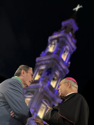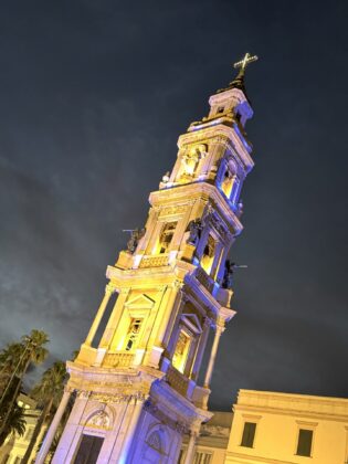 L’arcivescovo Caputo ha spiegato che «le parole non sono sufficienti a descrivere la bellezza dell’opera… quel campanile… è un faro che ci dice… che la fiamma del bene e della speranza è ancora viva», estendendo il simbolismo anche a chi non ha fede. Richiamando Bartolo Longo, ha sottolineato l’amore con cui il Santuario è stato edificato e ora custodito da una collaborazione tra enti, esaltando il valore della cooperazione per il bene comune.