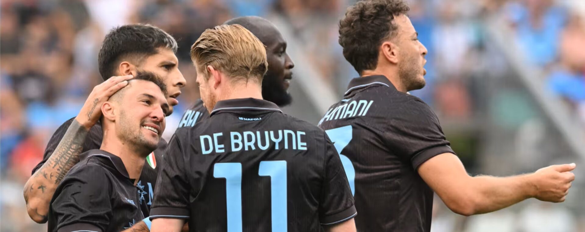 Il Napoli controlla bene la partita e mister Conte varia anche lo schema: a metà ripresa esce il bomber Lucca, De Bruyne agisce come falso nueve con Politano e Neres come esterni.