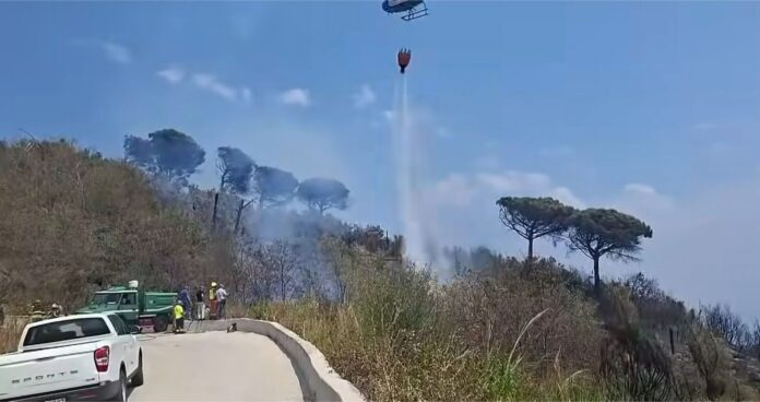 Le prime foto e video mostrano colonne di fumo e lingue di fuoco, con il rapido intervento di un elicottero dei Vigili del Fuoco, coordinati dalla Protezione Civile.