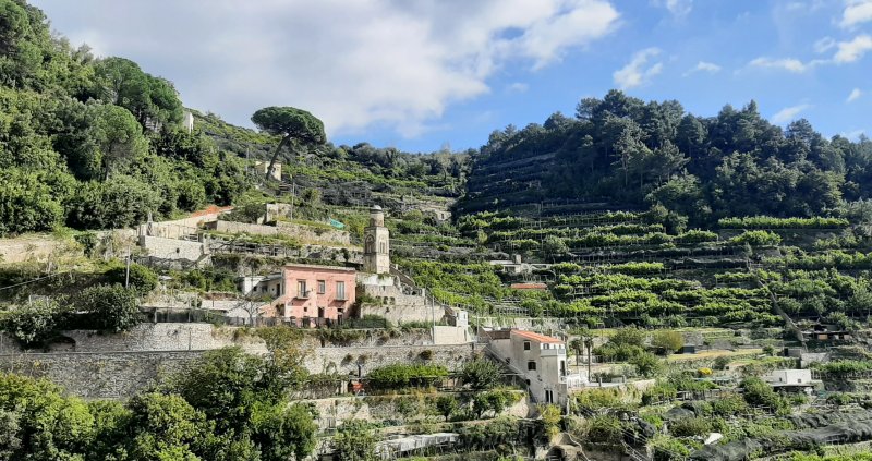 Elemento distintivo del paesaggio sono i terrazzamenti in pietra a secco, che prevengono l’erosione, stabilizzano il terreno e regolano acqua e temperatura. In ogni ettaro si possono contare fino a 800 alberi di limone, disposti in modo da sfruttare al massimo i pendii. Questo mosaico agricolo ospita inoltre oltre 970 specie vegetali, inclusa flora mediterranea rara, a conferma della ricchezza di biodiversità della Costiera.