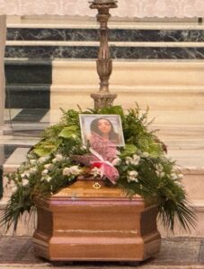 In prima fila i tre figli della donna, Kevin, Asia e Cecilia, avuti da una precedente relazione, rimasti in silenzio e con lo sguardo fisso sulla bara della madre per tutta la celebrazione. Accanto a loro il padre Antonio, la sorella Emanuela e il fratello Alessandro.