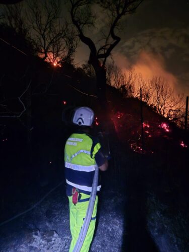 Le condizioni atmosferiche e il buio della notte non hanno consentito l’intervento dei mezzi aerei, in particolare elicotteri e Canadair, che non hanno potuto alzarsi in volo per supportare le operazioni di spegnimento. La situazione si è complicata ulteriormente a causa delle continue raffiche di vento, che hanno favorito l’avanzata delle fiamme.