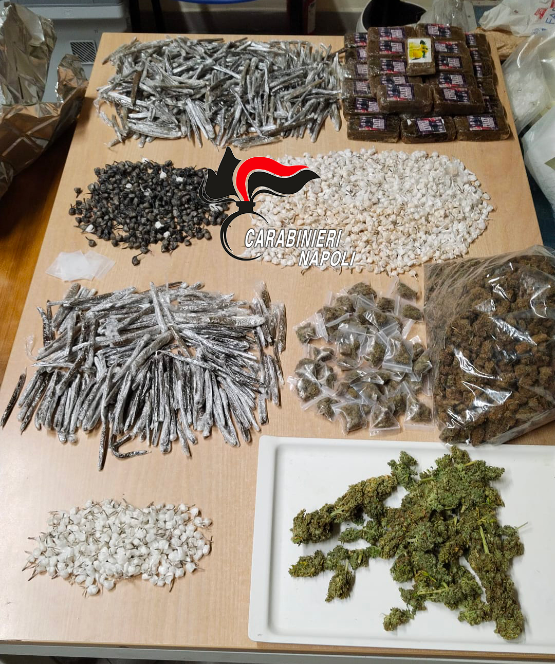 Il vero colpo di scena è arrivato quando i militari hanno scoperto altri nascondigli, ricavati nello scheletro di una cucina in muratura ancora in costruzione: al loro interno erano occultati oltre mezzo chilo di crack, 4 chili di hashish e 876 grammi di marijuana.