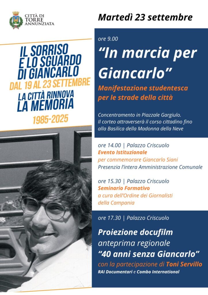 Una città intera si è fermata questa mattina per ricordare Giancarlo Siani, il giovane giornalista de Il Mattino assassinato dalla camorra il 23 settembre 1985. Centinaia di studenti degli istituti scolastici oplontini hanno partecipato a una marcia della memoria che ha attraversato le strade cittadine, trasformandole in un fiume di voci, colori e speranza.