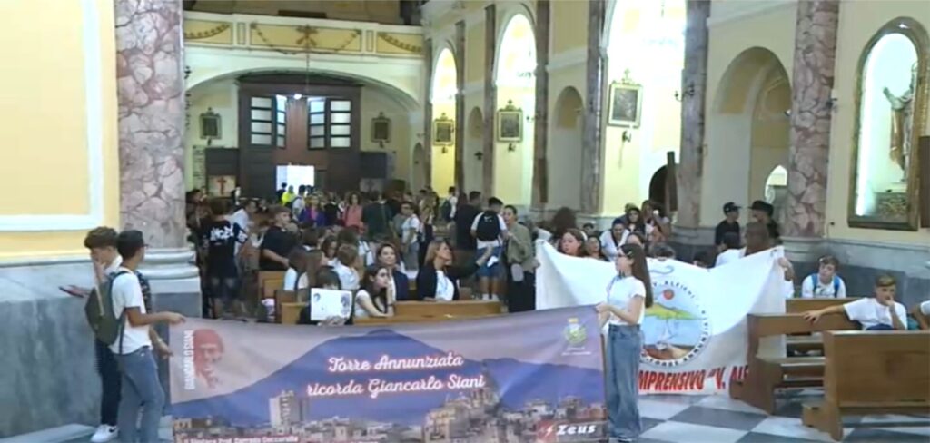 Partiti dallo stadio Giraud, i ragazzi hanno sfilato fino alla basilica della Madonna della Neve, intonando cori e slogan come «Giancarlo Siani uno di noi», a testimonianza di un legame profondo con il cronista simbolo di coraggio e impegno civile.