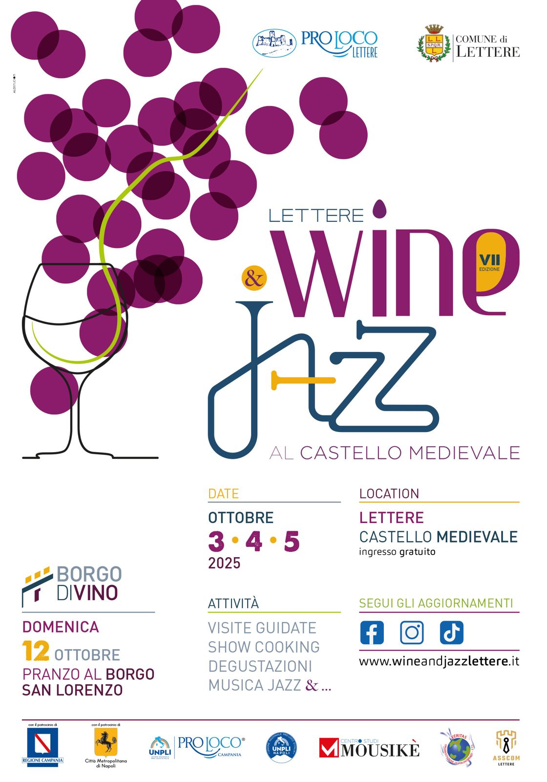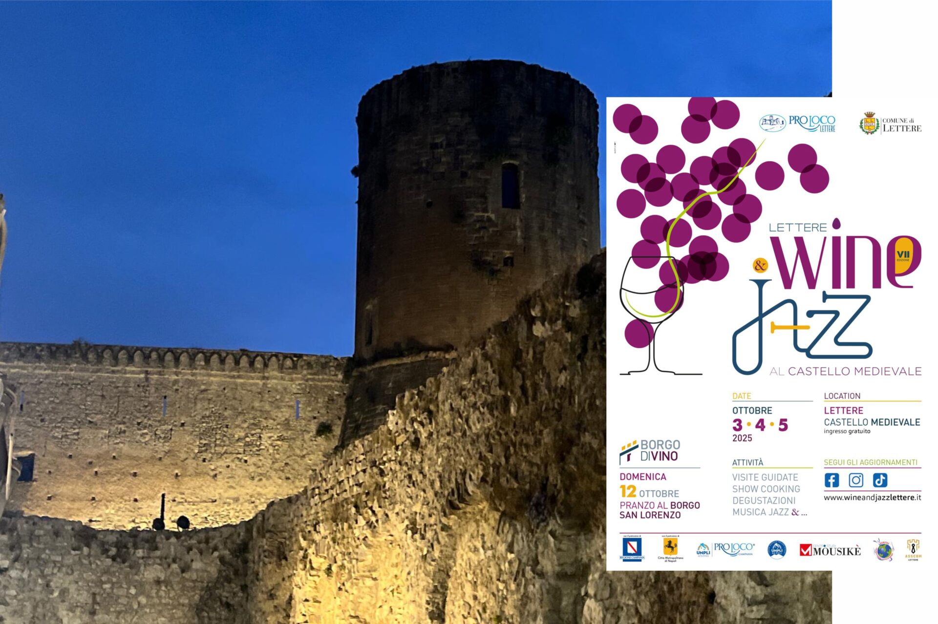 Un viaggio che accomuna sapori e note, accompagnato dal profumo della terra e da una esperienza unica tra bellezze paesaggistiche e cultura. Sarà questo il leitmotiv della settima edizione di “Wine and Jazz” a Lettere, evento organizzato dalla Pro Loco letterese, in collaborazione con il Comune e in partnership con l’associazione Centro Studi Mousikè, con il patrocinio della Regione Campania e della Città Metropolitana di Napoli. Dal 3 al 5 ottobre prossimi protagonista assoluto della cittadina dei Monti Lattari sarà l’antico Castello medievale, una fortezza millenaria che da secoli domina sull’Agro nocerino-sarnese e incastonata tra i Monti Lattari. È qui che si svolgeranno infatti gli eventi della kermesse che punta alla valorizzazione del territorio, partendo proprio dal famoso vino di Lettere, proseguendo con gli altri prodotti tipici del territorio, fino ad arrivare alla promozione delle bellezze paesaggistico-culturali e alla buona musica.