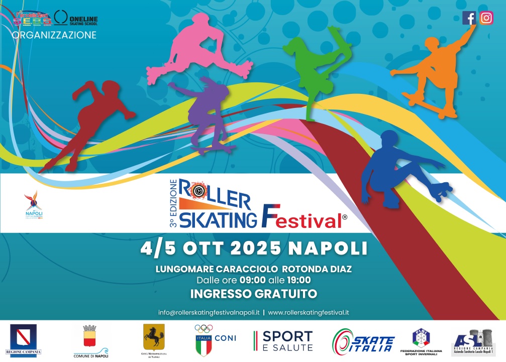 Un weekend di sport, spettacolo e inclusione sul Lungomare Caracciolo con il Roller Skating Festival Napoli 2025, il più grande evento dedicato al pattinaggio su rotelle del Sud Italia.