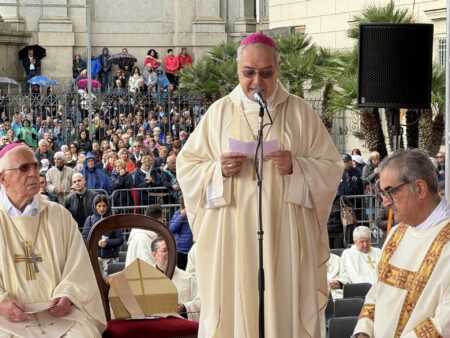 Nell’omelia Monsignor Pisanello ha esortato ad avere fede in Dio e a invocare l’intercessione della Madonna in un mondo nel quale «è sufficiente volgere lo sguardo all’Europa e al Mediterraneo per potersi rendere conto che sorta di violenza viene perpetrata, soprattutto verso gli indifesi ed inermi, bambini e anziani»