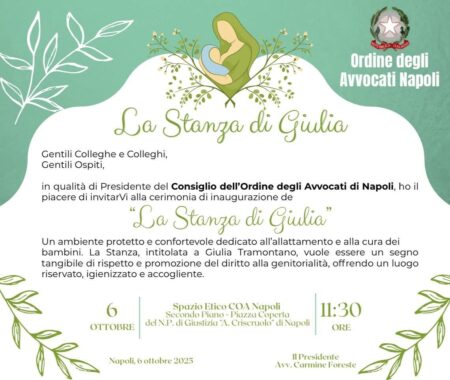 Dedicata ai neo genitori e alle donne in gravidanza, è stata inaugurata nel Tribunale di Napoli la “Stanza di Giulia”, un ambiente accogliente e funzionale pensato per consentire ad avvocati, magistrati e personale amministrativo di prendersi cura dei più piccoli anche durante le ore di lavoro.