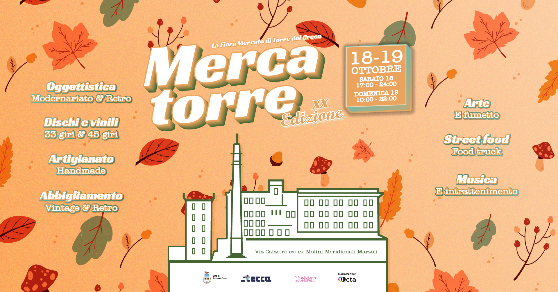 Torre del Greco si prepara ad accogliere il ritorno di Mercatorre, la fiera del vintage, dell’artigianato e del riuso più attesa della città, che celebra la sua ventesima edizione con un doppio appuntamento imperdibile: