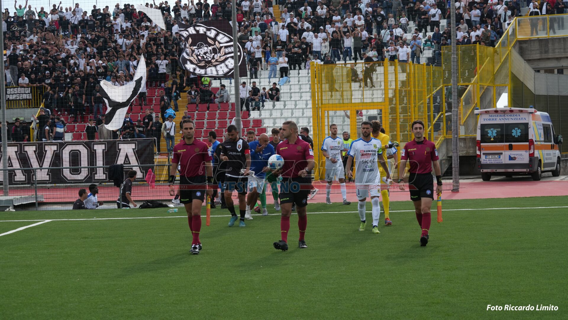 Nel secondo tempo ti aspetteresti un ritorno di fiamma dei siciliani, ma il cliché resta invariato e Ledesma & co. continuano a menare il torrone senza troppa difficoltà. Le occasioni per i torresi fioccano: Sellaf timbra una clamorosa traversa recuperando un pallone vagante dal limite, la conclusione del francese spacca il legno e ritorna in campo. Altre palle gol per gli oplontini arrivano da palle inattive, ma la bravura del portiere Lauritano – due volte, su punizione di Ledesma e su tiro da fuori di Reis – e l’imprecisione degli avanti torresi, che di testa spediscono clamorosamente fuori dei cioccolatini scartati dal Torero Ledesma da calcio piazzato, non consentono ai padroni di casa di arrotondare il punteggio, che resta così sull’uno a zero sino al triplice fischio del signor Ismail Sabri di Rovereto. Da segnalare, nei minuti di recupero, un severissimo doppio giallo al difensore savoiardo Forte, reo di avere ritardato la ripresa delle operazioni; correva il minuto 92 ma la gara era già storia.