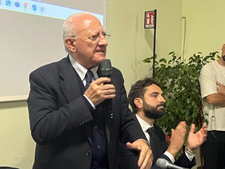 “Oggi la Campania è una regione modello, spero che il lavoro fatto in questi dieci anni non venga buttato a mare. Per le cose fatte, tra un po’ mi faranno monsignore”. È in campagna elettorale Vincenzo De Luca, il governatore che nel pomeriggio di oggi è intervenuto a Pimonte, alla conferenza di presentazione del progetto di realizzazione di due ponti tibetani. “Per noi il terzo mandato non ci sarà – ha continuato – ma guardo tutti dall’alto, state attenti perché non mi metterò a riposo”.
