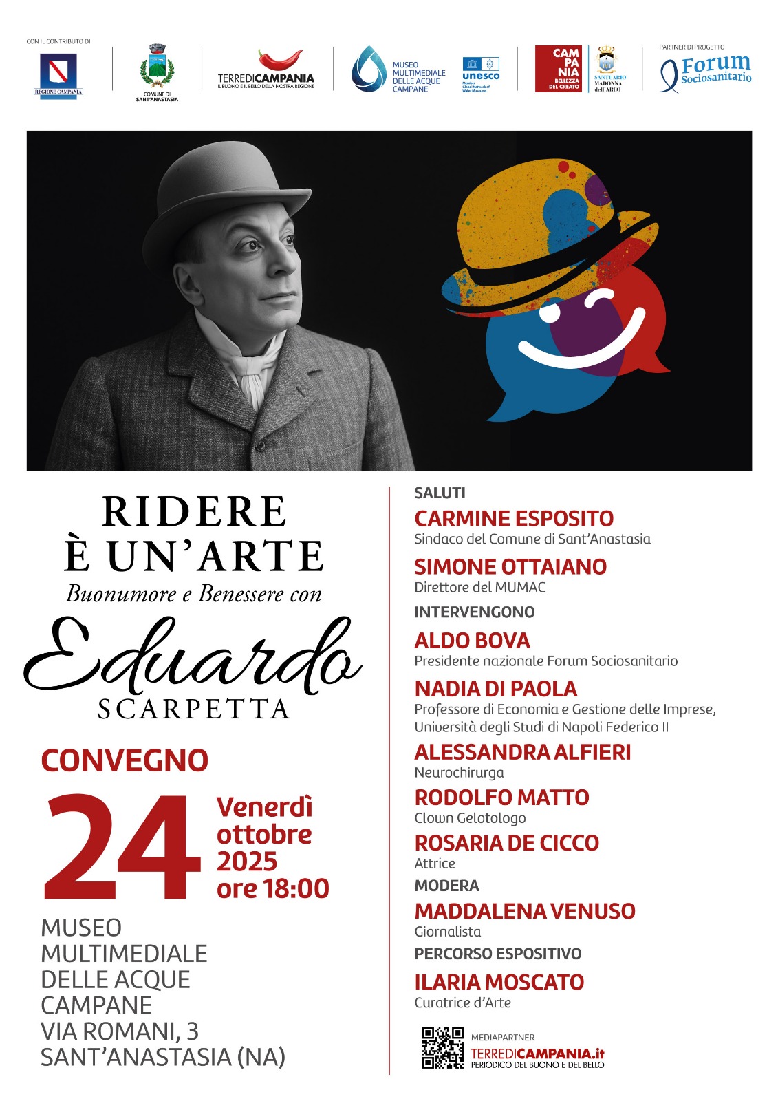 Da ormai diversi anni l’Associazione Terre di Campania APS, che ha tra i suoi scopi la valorizzazione e la riscoperta delle figure eccellenti della nostra regione, dedica iniziative ed eventi a personaggi di spicco del passato, originari della Campania. Nella ricorrenza dei 100 anni dalla morte di Eduardo Scarpetta, uno dei più grandi autori/attori comici affermatosi agli inizi del 1900, Terre di Campania ha scelto di dedicare al famoso artista l’incontro dal titolo “RIDERE È UN’ARTE, Buonumore e Benessere con Eduardo Scarpetta”.