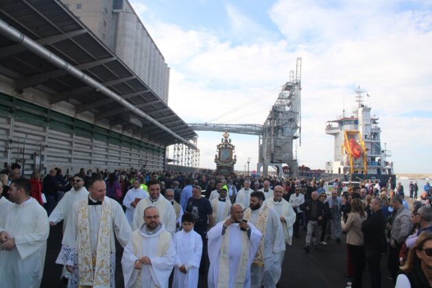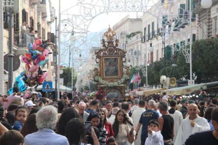 Nel pomeriggio, la processione ha attraversato il cuore cittadino, dal porto fino al Corso Umberto, mentre centinaia di balconi si aprivano al passaggio della Vergine. Gli anziani, i malati e le persone più fragili hanno salutato la Madonna con fiori e preghiere, trasformando la celebrazione in un autentico rito di comunità.